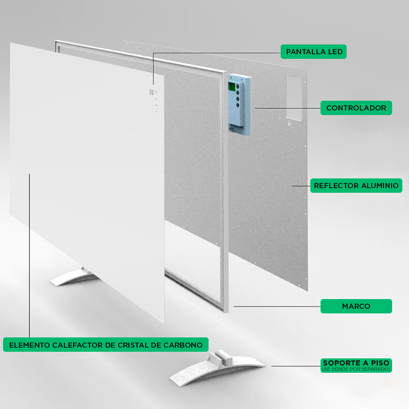 Calefactor Mural 720 W Panel Cristal de Carbono, APP Wi-Fi, Termostato Horario Programable